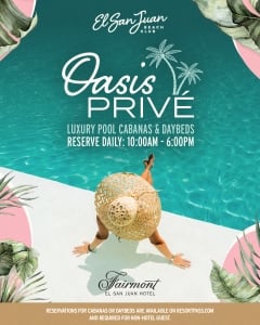 An iconic adventure awaits! Delight in our pools and cabanas at El San Juan Beach Club, music, unique cocktails, a delicious menu, and much more.